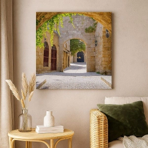 Impression sur toile - Image sur toile - Arches en pierre et rues pavées de style médiéval - 70x50cm - Le cortège apparaîtra bientôt - Décoration murale moderne pour le salon et la chambre ARTTOR