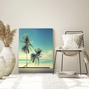 Le motif tropical avec palmiers et paysage de bord de mer crée une atmosphère chaleureuse et exotique à l'intérieur, parfaite pour ceux qui apprécient l'inspiration estivale. Ce tableau sera parfait dans un salon, une chambre ou un coin détente, apportant une touche de fraîcheur estivale.