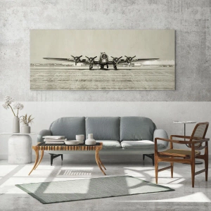 Impression sur verre - Image sur verre - Avion historique à l'aéroport en style sépia - 50x70cm - Toujours prêt! - Décoration murale moderne pour le salon et la chambre ARTTOR