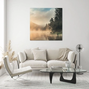 Impression sur verre - Image sur verre - Un matin brumeux sur un lac forestier - 70x50cm - Naissance du jour - Décoration murale moderne pour le salon et la chambre ARTTOR