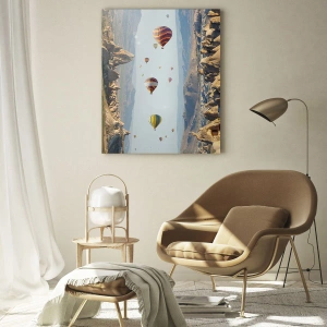 Impression sur verre - Image sur verre - Ballons colorés au-dessus du paysage rocheux de la Cappadoce - 50x70cm - Ici, tout est possible - Décoration murale moderne pour le salon et la chambre ARTTOR
