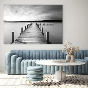 Ce tableau sur verre est un excellent choix pour ceux qui recherchent une décoration murale subtile et expressive. La présence d'éléments tels que le lac, la jetée et la ligne d'horizon crée une atmosphère de méditation et une impression de temps figé. Quel que soit le style d'intérieur, ce tableau apportera profondeur et élégance. Il est idéal pour ceux qui souhaitent imprégner leur espace non seulement de la beauté de la nature, mais aussi de la valeur émotionnelle de la simplicité et du silence. Grâce à sa polyvalence, ce tableau peut être le point central d'une décoration intérieure ou une toile de fond subtile pour d'autres décorations. Sa présence ne domine pas l'espace, mais s'harmonise avec lui, créant un ensemble harmonieux. Une esthétique minimaliste associée à un message profond en fait une proposition intemporelle, indépendante des tendances et des styles. C'est un parfait exemple de la façon dont un pont peut devenir une métaphore de la vie, des choix et des chemins que nous suivons.