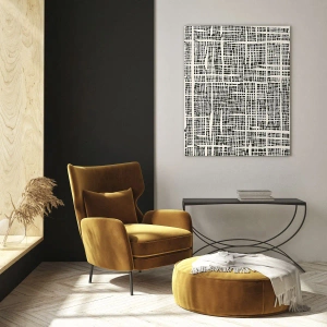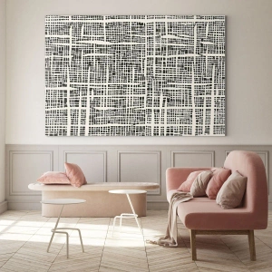 Le caractère de la composition repose sur le contraste harmonieux du noir et du blanc, et des formes régulières et irrégulières. Cet effet attire le regard, encourage l'observation des détails et permet de nombreuses interprétations. Le tableau peut être associé à un quadrillage urbain, à la texture d'un tissu ou à une structure microscopique. C'est une forme de communication universelle qui s'intègre parfaitement aux espaces privés comme professionnels.