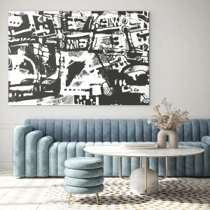 - Ce tableau présente une composition dynamique de formes en noir et blanc, au caractère technique et géométrique. Conçu dans un style graphique et épuré, il s'intègre parfaitement aux intérieurs modernes et industriels. Son contraste marqué et sa forme ...