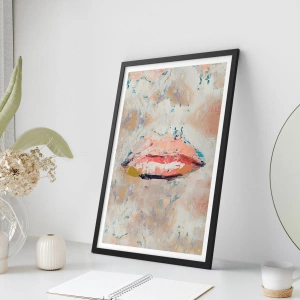 - L'affiche représente des lèvres abstraites dans une palette pastel rehaussée de touches de beige, de rose et de tons subtils. Cette composition de style impressionniste ajoute une touche artistique et élégante à cet intérieur.
