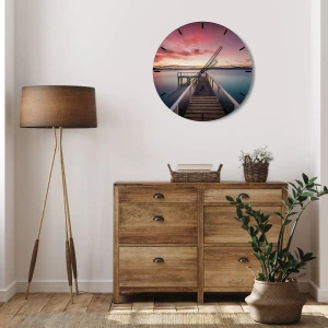 Horloge murale - Pendule murale - Une jetée menant à un lac tranquille au coucher du soleil - 30x30cm - La douce flamme du soir - Décoration murale moderne pour le salon et la chambre ARTTOR