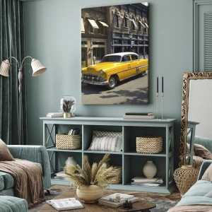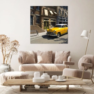Impression sur toile - Image sur toile - Un taxi jaune dans une rue bordée d'immeubles - 50x70cm - Il y a longtemps en Amérique - Décoration murale moderne pour le salon et la chambre ARTTOR