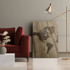 Impression sur toile - Image sur toile - Une carte du monde découpée sur une surface en bois - 50x70cm - Le monde est sur la table - Décoration murale moderne pour le salon et la chambre ARTTOR