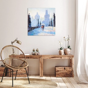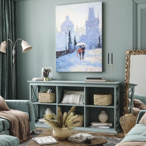Impression sur toile - Image sur toile - Couple romantique sur un pont sous la pluie, une scène picturale - 50x70cm - La pluie a dû nous charmer - Décoration murale moderne pour le salon et la chambre ARTTOR