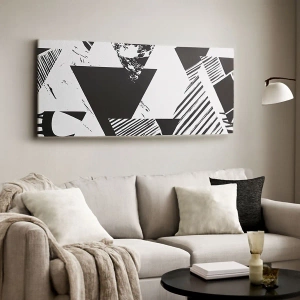 Impression sur toile - Image sur toile - Motifs géométriques de forme minimaliste en noir et blanc - 50x70cm - Pluie de triangles - Décoration murale moderne pour le salon et la chambre ARTTOR