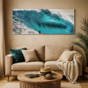 Impression sur toile - Image sur toile - Surfeur devant une énorme vague - 50x70cm - Challenge accepté - Décoration murale moderne pour le salon et la chambre ARTTOR