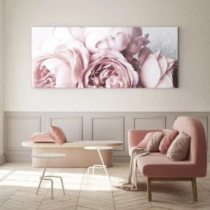 Impression sur verre - Image sur verre - Gros plan de fleurs de pivoine roses dans une lumière douce - 70x50cm - Pour les romantiques - Décoration murale moderne pour le salon et la chambre ARTTOR