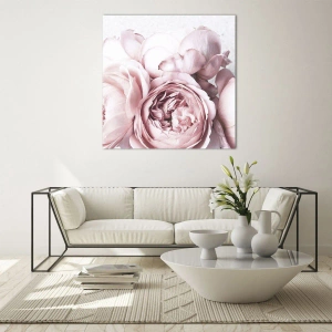 « Pour les romantiques » est un tableau empreint d'émotion subtile et de réconfort visuel, représentant des fleurs délicates aux tons rose poudré. Le motif central de la composition est constitué de pivoines en fleurs, photographiées de près, dont la structure, les pétales et la douce lumière créent une atmosphère exceptionnellement intime et chaleureuse. L'ensemble se détache sur un fond clair et neutre, qui met en valeur les couleurs des fleurs et souligne leur beauté naturelle.
