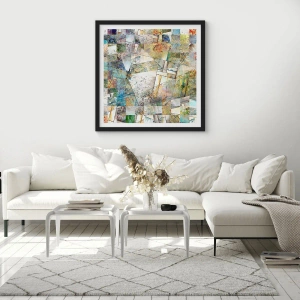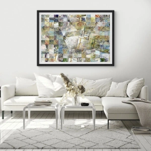 Le motif se compose de différentes formes qui s'entrelacent et se combinent, créant un effet d'espace multicouche. Les couleurs terreuses naturelles, notamment les nuances de beige, de vert et de bleu, confèrent à l'affiche une élégance subtile et un caractère chaleureux.