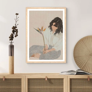 Affiche dans un chêne clair - Poster - Portrait avec une fleur exotique - 40x50 cm