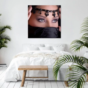 Décoration murale - Mystère tentateur oriental - Portrait d'une femme ornée de bijoux décoratifs sur fond noir