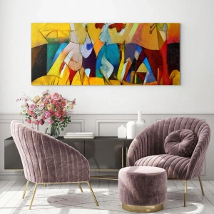 La finition en verre souligne l'intensité des couleurs et ajoute profondeur et brillance à l'image. La technologie d'impression utilisée garantit durabilité et haute qualité, garantissant ainsi que l'image conservera longtemps sa valeur esthétique. La surface en verre confère à la pièce une élégance qui complète parfaitement son caractère moderne.