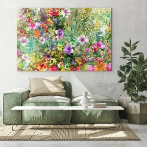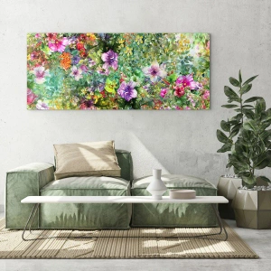 Impression sur verre - Image sur verre - Fleurs colorées dans une composition artistique - 50x70cm - En fleurs pour la perdition - Décoration murale moderne pour le salon et la chambre ARTTOR