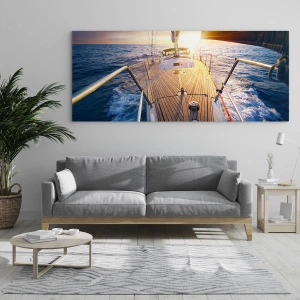 Impression sur verre - Image sur verre - Le pont d'un voilier sur fond de soleil couchant et de vagues de la mer - 50x70cm - Courir sur les vagues - Décoration murale moderne pour le salon et la chambre ARTTOR