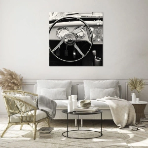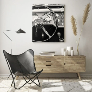 - Ce tableau noir et blanc représente l'intérieur d'une voiture classique, avec son volant apparent et ses cadrans rétro. Les détails mécaniques et le ton sépia créent une décoration unique pour les passionnés d'automobile et de vintage.