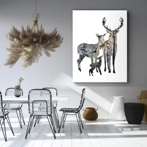 Impression sur toile - Image sur toile - Paysage forestier aux silhouettes de cerfs - 120x80cm - Photographie de famille - Décoration murale moderne pour le salon et la chambre ARTTOR