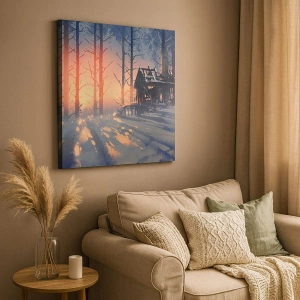 • Paysage, Chalet Forestier, Forêt, Paysages, Nature, Pour le bureau, Pour le bureau, Pour la salle à manger, Pour le hall, Pour le salon, Pour la chambre, Orange, Gris, Carré