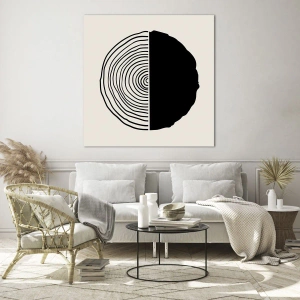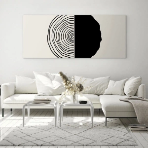 Impression sur verre - Image sur verre - Un graphique minimaliste d'une coupe transversale d'un tronc d'arbre en deux moitiés. - 50x70cm - Moitié-moitié - Décoration murale moderne pour le salon et la chambre ARTTOR