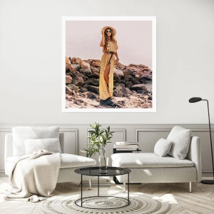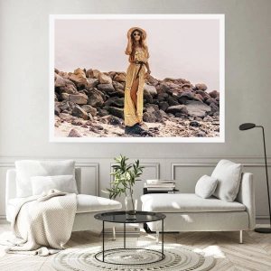 Affiche - Poster - Femme élégante dans une robe bohème sur fond rocheux - 50x70cm - La magie des pierres - Décoration murale moderne pour le salon et la chambre ARTTOR