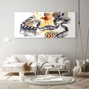 Ce tableau s'inspire de la magie du cinéma, capturée dans des symboles tels qu'une caméra et une bobine de film. Présentés sous une forme artistique, ces éléments attirent le regard et stimulent l'imagination. Cette œuvre s'intègre parfaitement aux espaces modernes comme plus classiques, leur conférant une atmosphère unique.