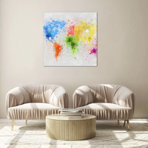Impression sur verre - Image sur verre - Une carte du monde en éclaboussures de peinture colorées - 50x70cm - Toutes les couleurs du monde - Décoration murale moderne pour le salon et la chambre ARTTOR