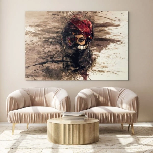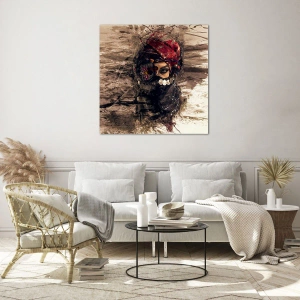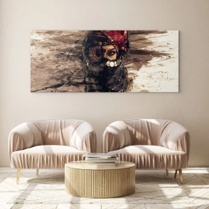 Impression sur verre - Image sur verre - Portrait d'une femme mystérieuse au turban rouge - 70x50cm - Inquiétant, c'est le moins qu'on puisse dire - Décoration murale moderne pour le salon et la chambre ARTTOR