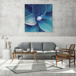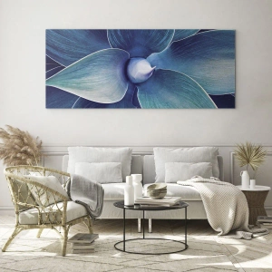 Impression sur verre - Image sur verre - Macrophotographie d'une plante dans des tons de bleu - 50x70cm - Le bleu du ciel - Décoration murale moderne pour le salon et la chambre ARTTOR