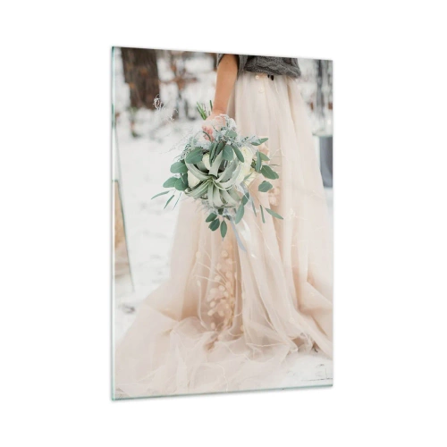 La peinture sur verre est faite sur un verre de 4 mm d'épaisseur. Les bords du verre ont une arête trapézoïdale mate. La tableau est sûr à l'utilisation et prêt à être accroché - il a des crochets en métal attachés à l'arrière du cadre et des entretoises en mousse permettant la régulation uniforme de la distance du tableau au mur.