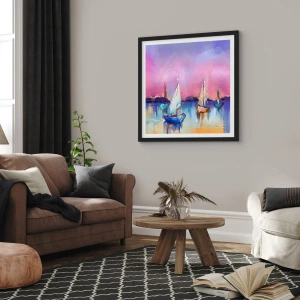 Affiche dans un cadre noir - Poster - Voiliers sur une mer calme aux couleurs pastel du coucher de soleil - 70x50cm - Direction: les eaux larges - Décoration murale moderne pour le salon et la chambre ARTTOR