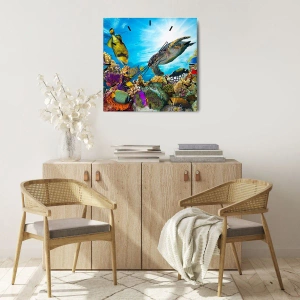L'horloge murale « Promenade de corail » est une décoration unique qui nous transporte dans un monde sous-marin coloré et exotique. Le cadran présente un récif corallien, des poissons tropicaux et une majestueuse tortue de mer, créant un paysage pittoresque et harmonieux.