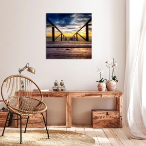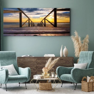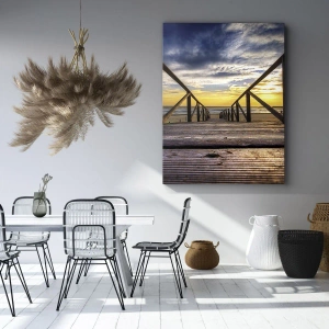 Impression sur toile - Image sur toile - Jetée en bois menant à la plage au coucher du soleil - 50x70cm - Directement sur une plage calme au coucher de soleil - Décoration murale moderne pour le salon et la chambre ARTTOR