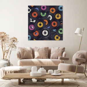Impression sur toile - Image sur toile - Des vinyles colorés empilés les uns sur les autres - 50x70cm - Couleurs des classiques - Décoration murale moderne pour le salon et la chambre ARTTOR