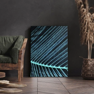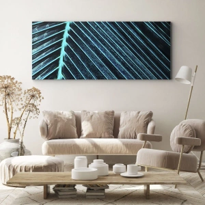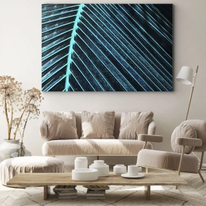 Impression sur toile - Image sur toile - Macrophotographie d'une feuille dans les tons turquoise et bleu marine - 50x70cm - Texture verte - Décoration murale moderne pour le salon et la chambre ARTTOR