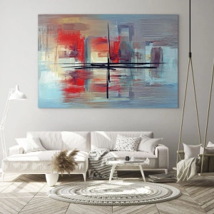 La peinture sur verre est faite sur un verre de 4 mm d'épaisseur. Les bords du verre ont une arête trapézoïdale mate. La tableau est sûr à l'utilisation et prêt à être accroché - il a des crochets en métal attachés à l'arrière du cadre et des entretoises en mousse permettant la régulation uniforme de la distance du tableau au mur.