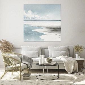 Impression sur verre - Image sur verre - Un paysage marin tranquille dans un style aquarelle dans des tons de bleu. - 70x50cm - Marée douce - Décoration murale moderne pour le salon et la chambre ARTTOR