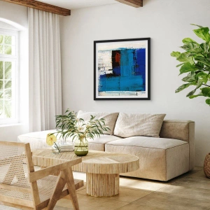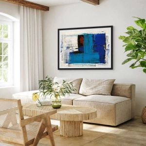 Affiche dans un cadre noir - Poster - Composition abstraite dans les tons de bleu et de blanc - 70x50cm - Secret de bleu - Décoration murale moderne pour le salon et la chambre ARTTOR