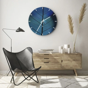 Horloge murale - Pendule murale - Gros plan d'une feuille bleue avec des détails de veines visibles - 30x30cm - Construction complexe - Décoration murale moderne pour le salon et la chambre ARTTOR