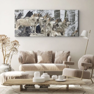Impression sur toile - Image sur toile - Une meute de loups dans la forêt d'hiver - 70x50cm - Famille et amis - Décoration murale moderne pour le salon et la chambre ARTTOR