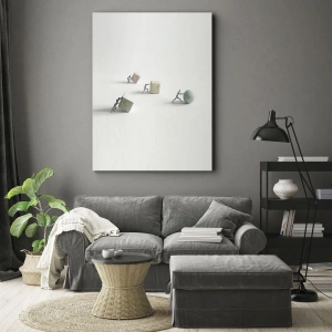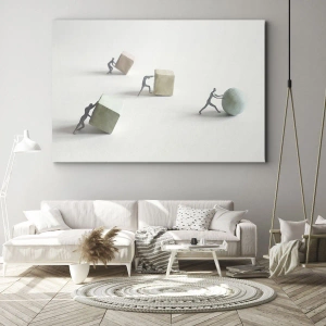 Impression sur toile - Image sur toile - Figurines miniatures poussant des formes sur un fond clair - 70x50cm - Rien que la vie - Décoration murale moderne pour le salon et la chambre ARTTOR