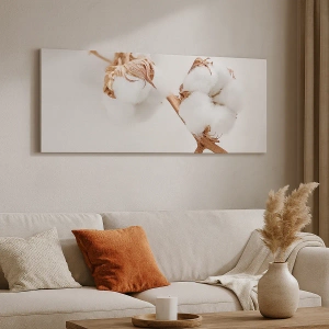 Le coton symbolise la pureté et la délicatesse, ce qui fait de cette impression un excellent choix pour les amateurs de motifs naturels et de détails subtils. Les nuances délicates du fond et les couleurs naturelles de la branche créent une composition équilibrée qui apporte une atmosphère d'harmonie et de simplicité à la pièce.