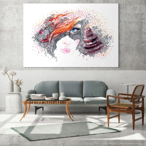 Impression sur verre - Image sur verre - Portrait d'une femme aux motifs dynamiques et aux accents rouges - 50x70cm - Avec elle, c'est tous les jours la fête - Décoration murale moderne pour le salon et la chambre ARTTOR