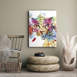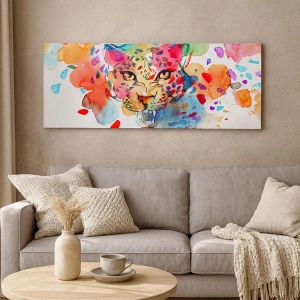 Impression sur toile - Image sur toile - Portrait abstrait d'un léopard aux couleurs intenses - 70x50cm - La belle et la Bête - Décoration murale moderne pour le salon et la chambre ARTTOR