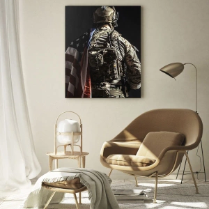 Choisissez le tableau « Soldat avec un drapeau américain » sur fond sombre pour ajouter un style unique, de l'inspiration et un message fort à votre intérieur. Faites de ce tableau un symbole d'honneur, de sacrifice et de patriotisme.