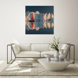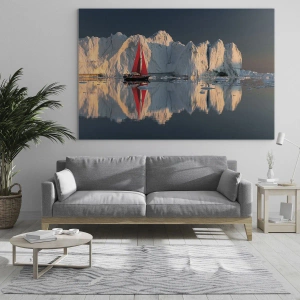 - La voile rouge d'un voilier contraste avec les icebergs monumentaux et le calme de l'eau. Le pittoresque coucher de soleil crée une atmosphère unique de silence et de recueillement. Ce tableau est parfait pour les intérieurs empreints d'harmonie et d'e...