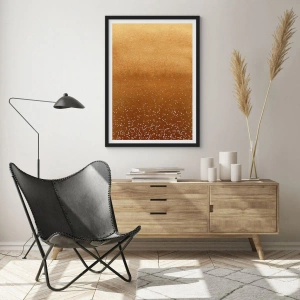 Affiche dans un cadre noir - Poster - Un dégradé doré avec des reflets et des embellissements subtils - 70x50cm - Origine du monde - Décoration murale moderne pour le salon et la chambre ARTTOR